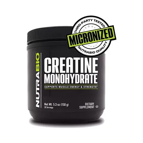 La Creatina Monohidratada Nutrabio de 150 gramos ofrece 30 servicios para potenciar tu rendimiento físico y mejorar la recuperación muscular. Con la más alta calidad, este suplemento te ayudará a alcanzar tus metas deportivas. ¡Aprovecha sus beneficios y maximiza tu entrenamiento!